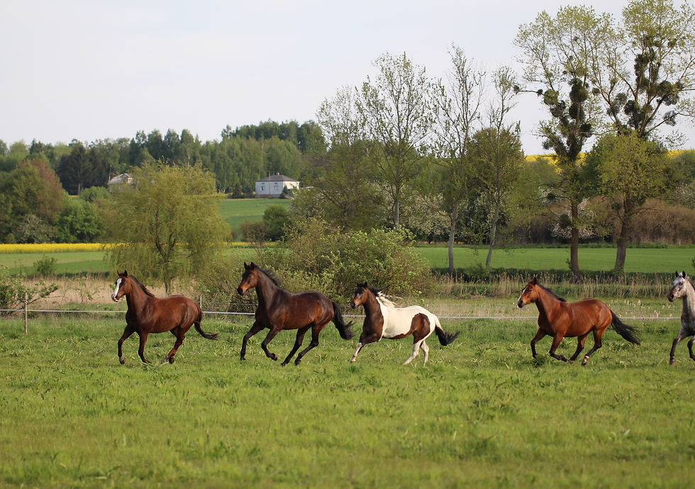 In our stable, we decided on a paddock trail open stable, so that the horses can move around a lot and live together as a herd. It has a small grove, various sandy areas, bushes, trees, mineral and salt stones and constantly fresh fountain water. The feeding takes place around the clock by hay on two large, covered hay stations. They also have enough pastures.